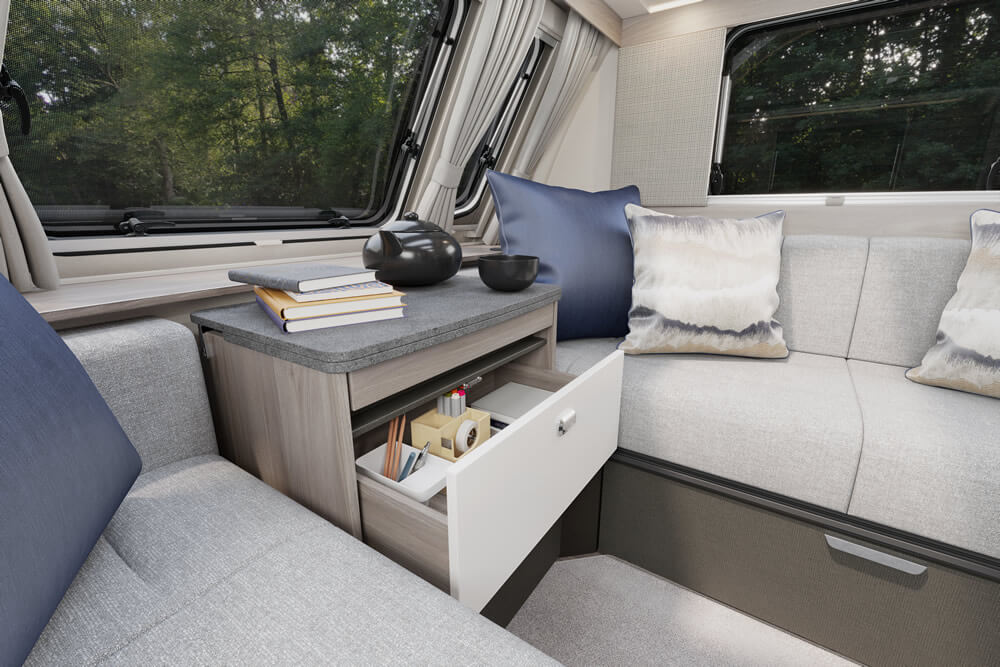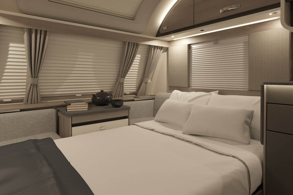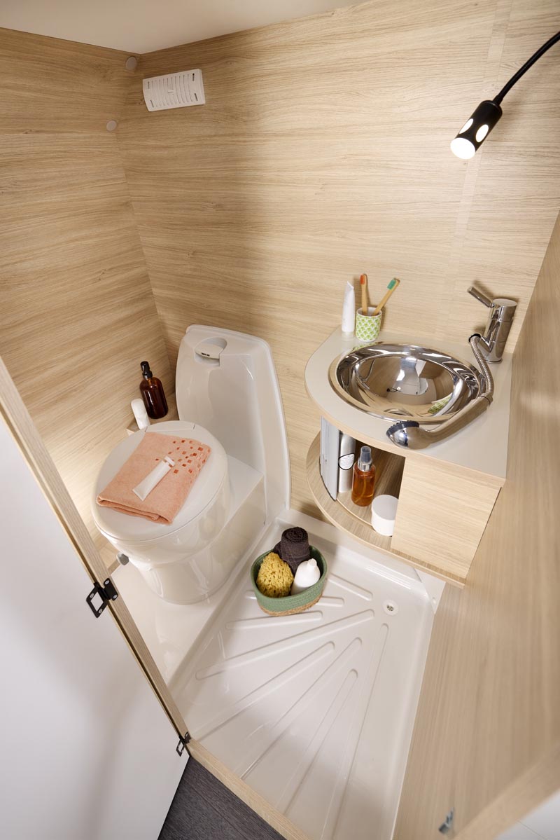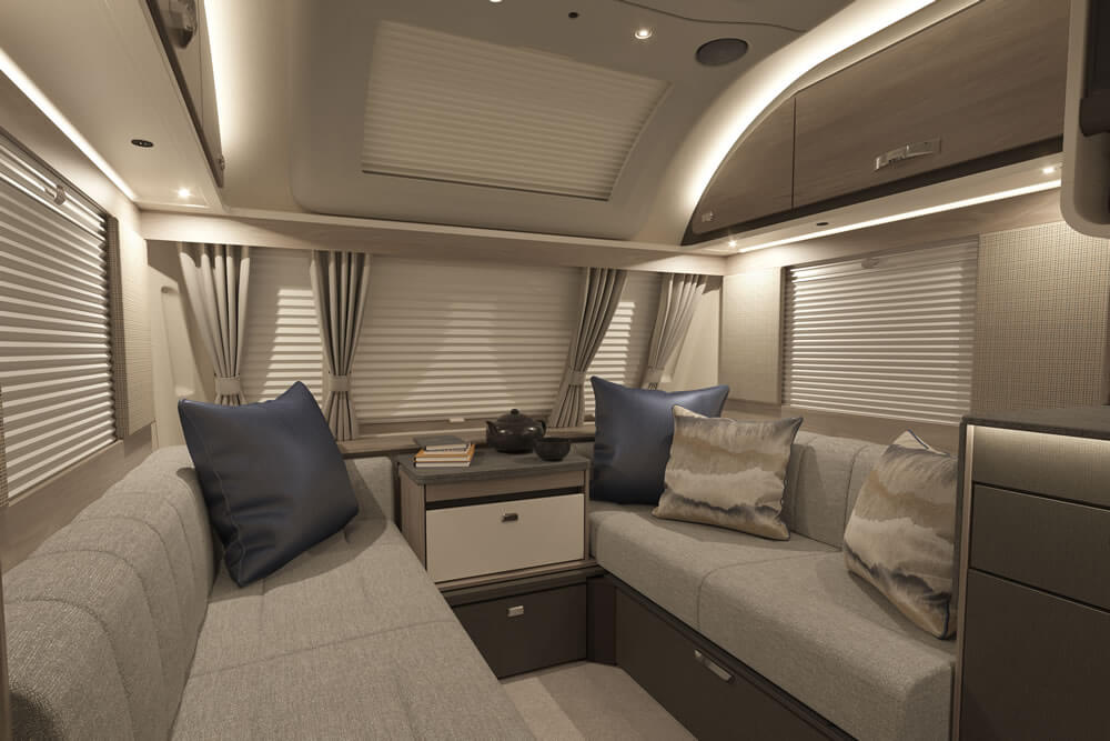 Menawarkan ruang nyaman untuk 3 – 5 orang, dilengkapi shower, wastafel, toilet, banyak pilihan penyimpanan, serta area tidur yang bisa diubah menjadi meja makan atau sudut sofa.